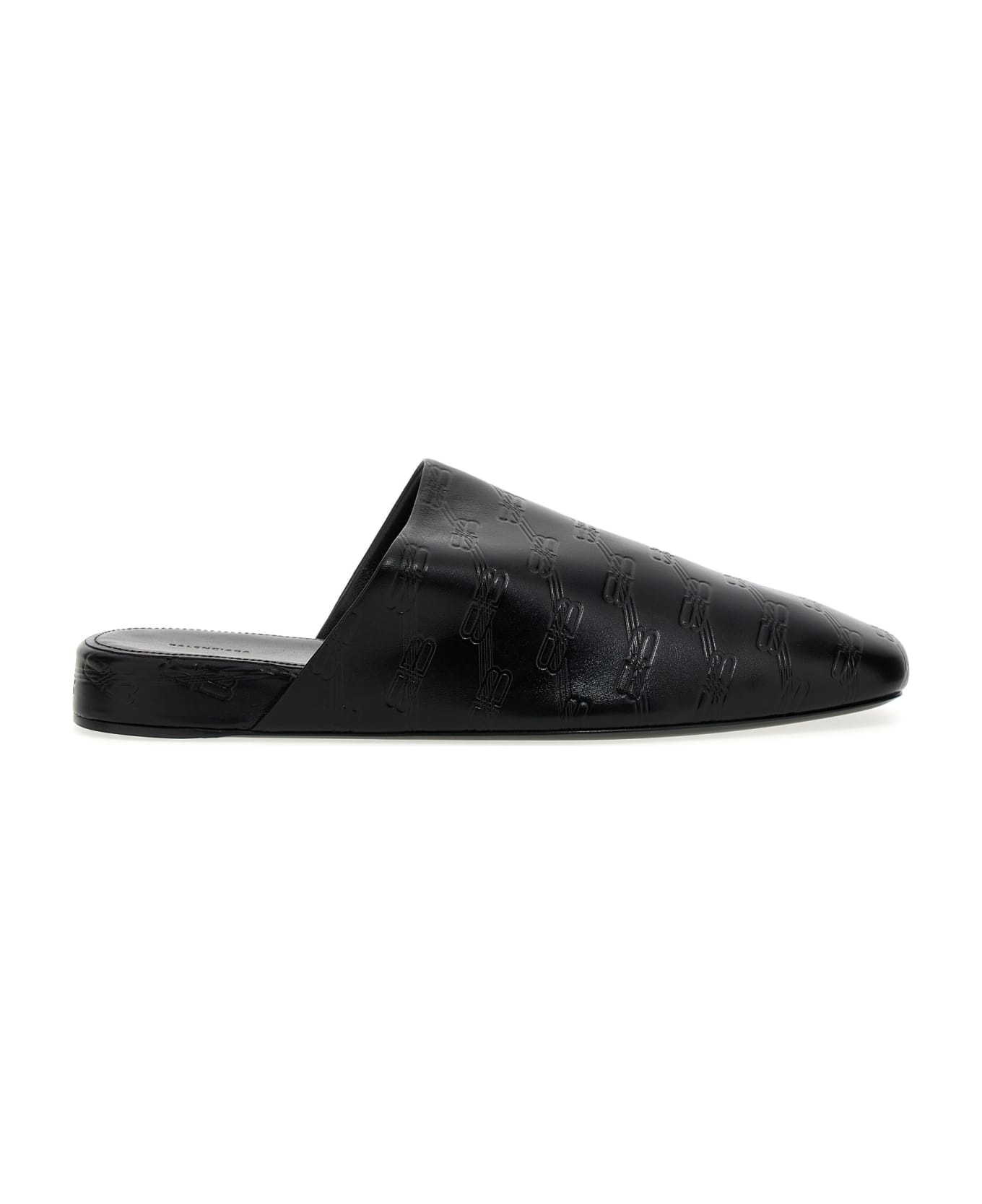 debossed-logo leather mules