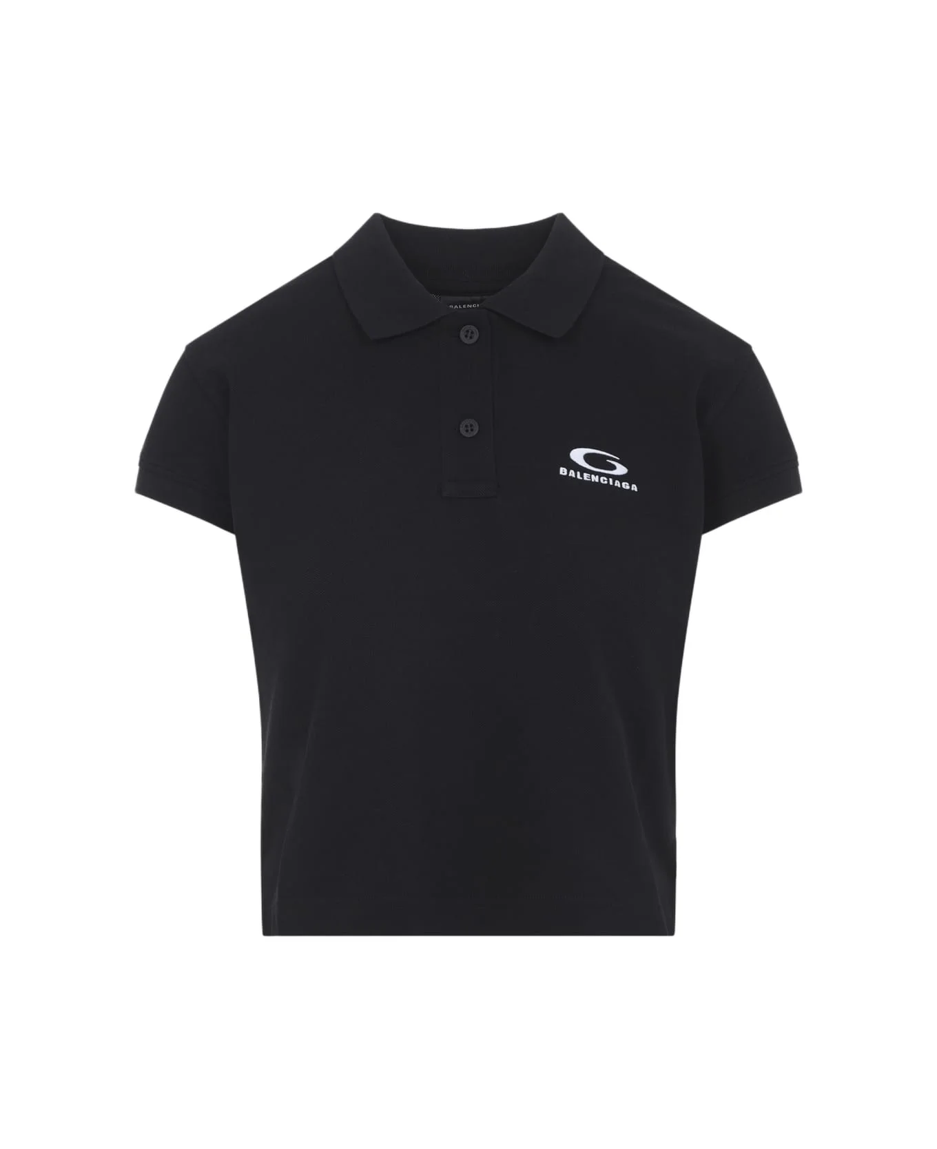 Balenciaga SS Black Cotton Polo. Crafted from black cotton pique, featuring a pointed collar, two-button front fastening, contrasting logo embroidery on the front, short sleeves, side vents, and a longer back hem. Made in: Portugal Color: Black White Model number: 858098TTVT81070