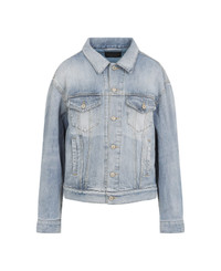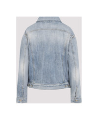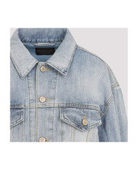 Balenciaga Standing Collar Light Blue Cotton Jacket. Bleached blue cotton denim, pointed collar, front button fastening, flap pockets on the breast, two front pockets, dropped shoulders, long sleeves, buttoned cuffs, back yoke, straight hem. Made in: Italy Color: Nineties Model number: 814038TRW592540