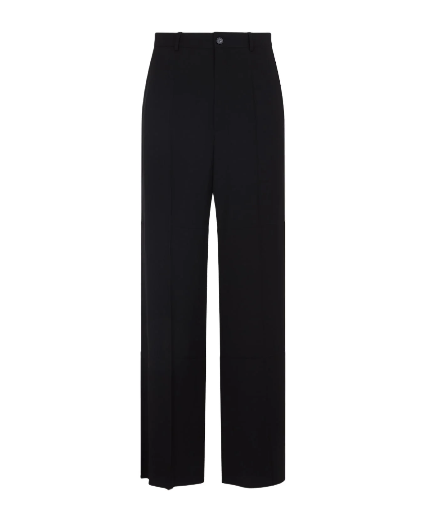 Balenciaga Black Tailored Pants. Crafted in viscose and cupro blend. Front concealing zipped fastening, front buttoned fastening, belt loops, side pockets, back slit buttoned pocket, wide leg, straight hem. Made in: Italy Color: Black Model number: 841107TRT01