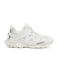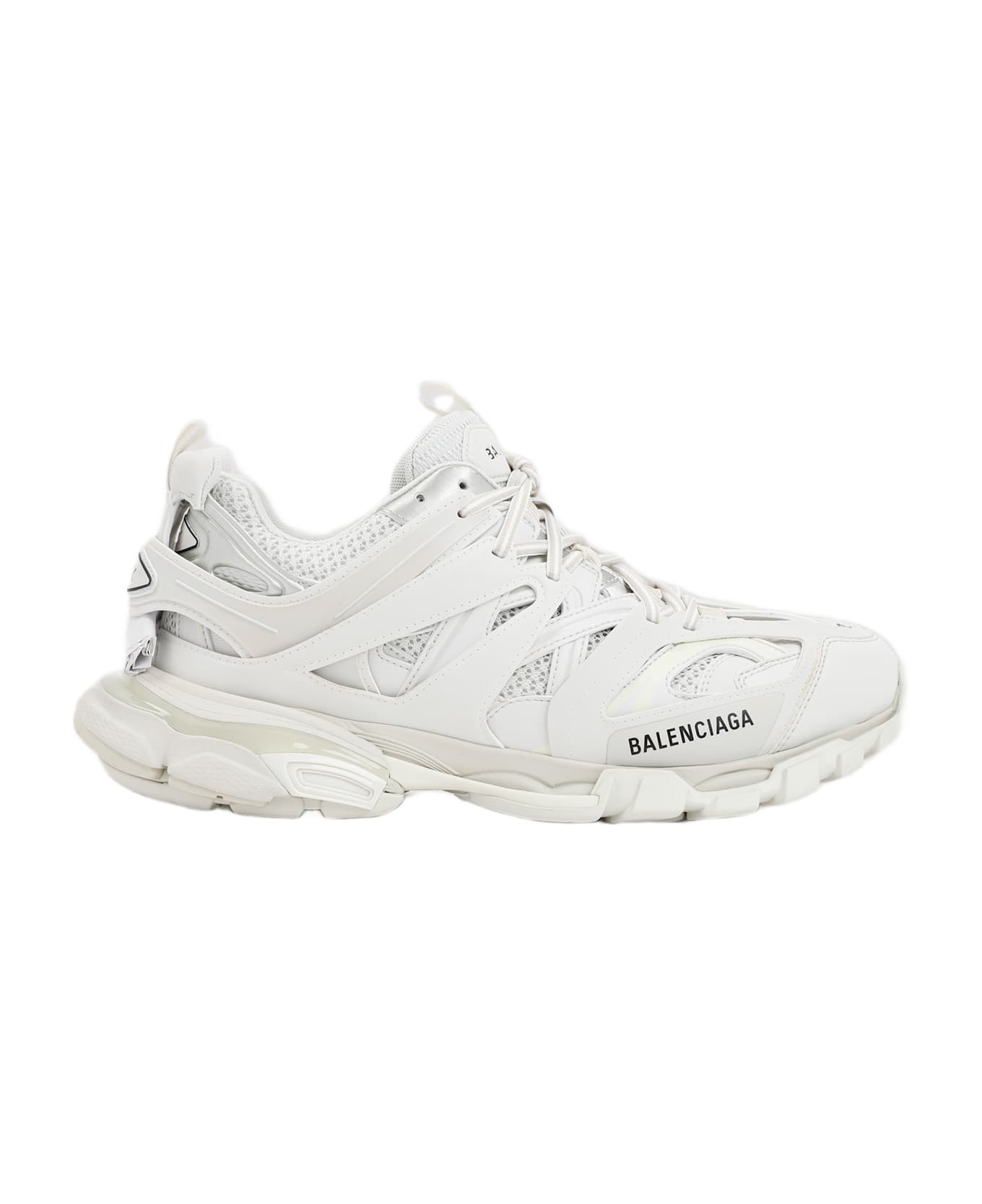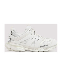Balenciaga White Track Sneakers. White mesh and nylon upper, size at the edge of the toe, track embossed at the back of the heels. Lace-up fastening, BB embossed on front. Back pull-on tab and tongue pull-on tab, tonal dynamic sole design. Made in: China Color: White Model number: 542023W1GB19000
