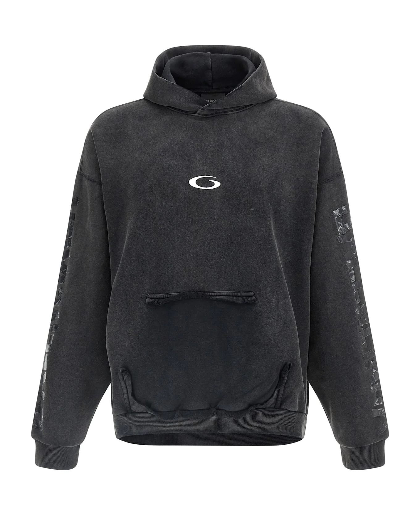 Washed and used dry fleece hoodie with logo embroidery and ripped front pocket, long cuffed sleeves, dropped shoulders and 'Transparent Tape' pattern. Composition: 100% cotton Made in: Portugal Color: Black Size and fit: - true to size fit Model number: 744441TTVE69374