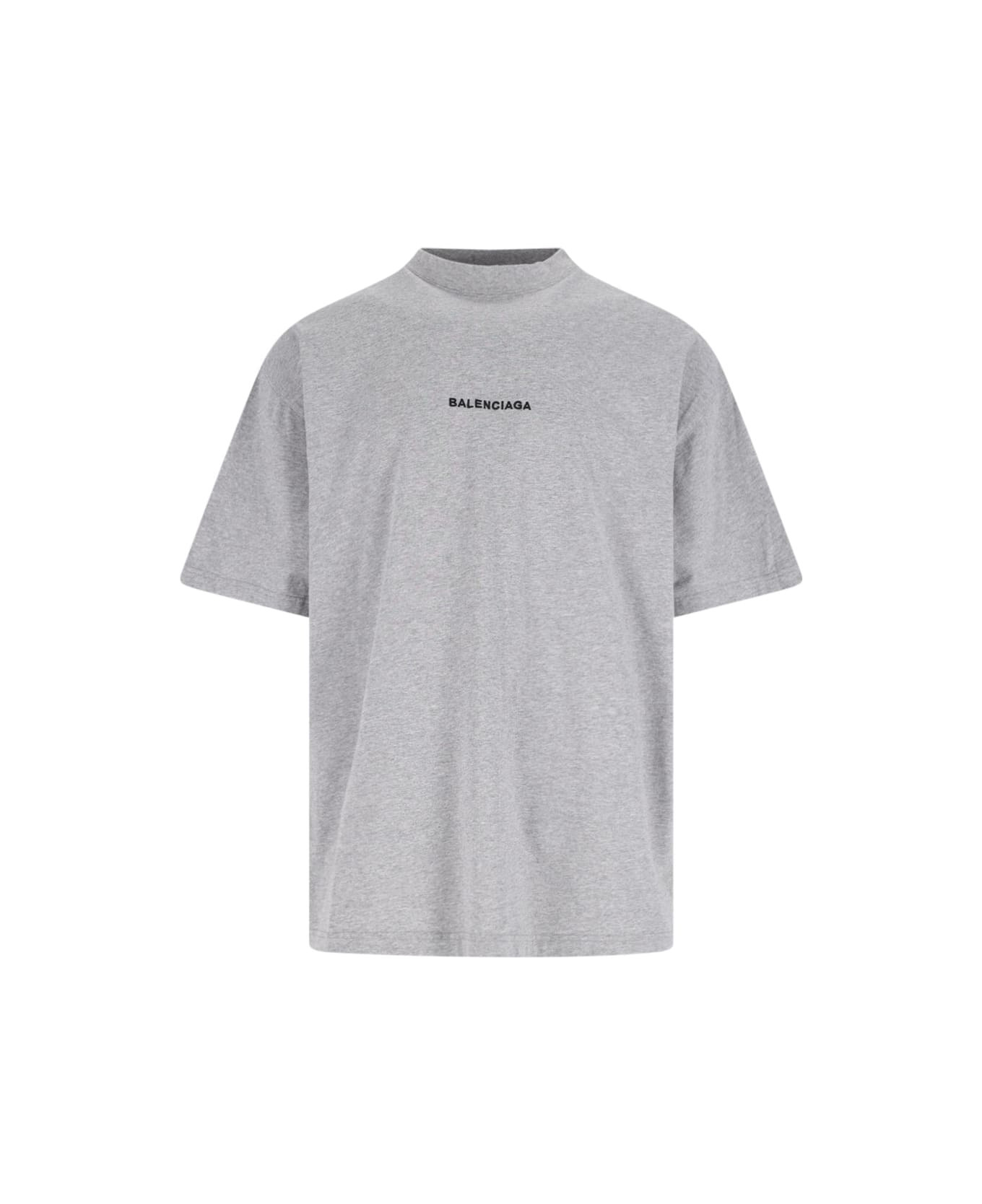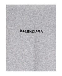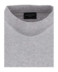Balenciaga 'Uniform' oversize grey cotton crew neck t-shirt with short sleeves, black logo print on the front, multicolor logo patch on sleeves, straight hem. Composition: 100% Cotton Made in: Portugal Color: Gray Size and fit: - vestibilita regolare Model number: 831305TSVH41300