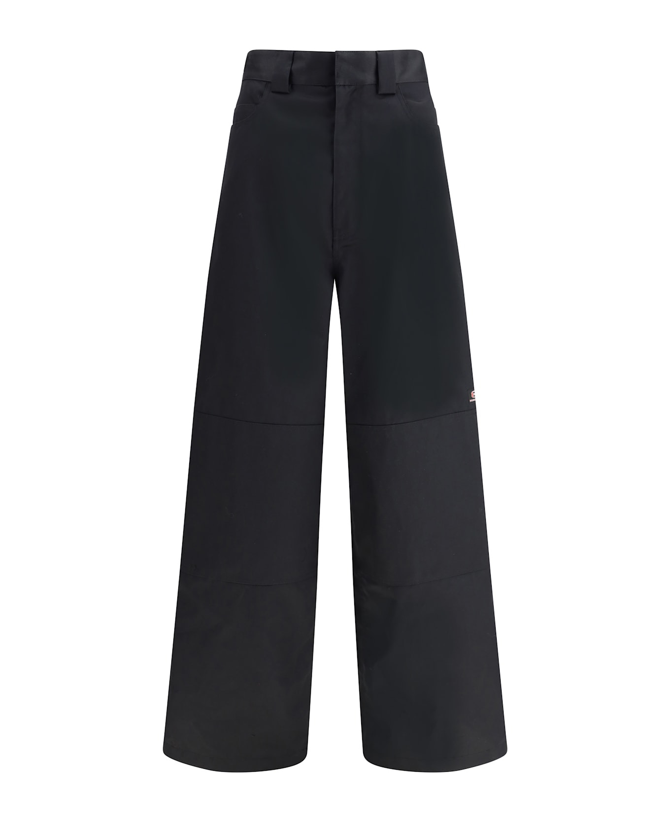 Balenciaga's utility workwear pants reinterpret workwear style with a contemporary twist. made of durable cotton twill, they feature a hidden zipper flap, seven belt loops at the waist, two slit pockets at the front and two welt pockets at the back. completing the design is a small riveted pocket on the thigh and the balenciaga workwear motif printed on the front and back for a bold, functional look. Composition: 100% % Cotton Made in: Italy Model number: 841707TKP241000