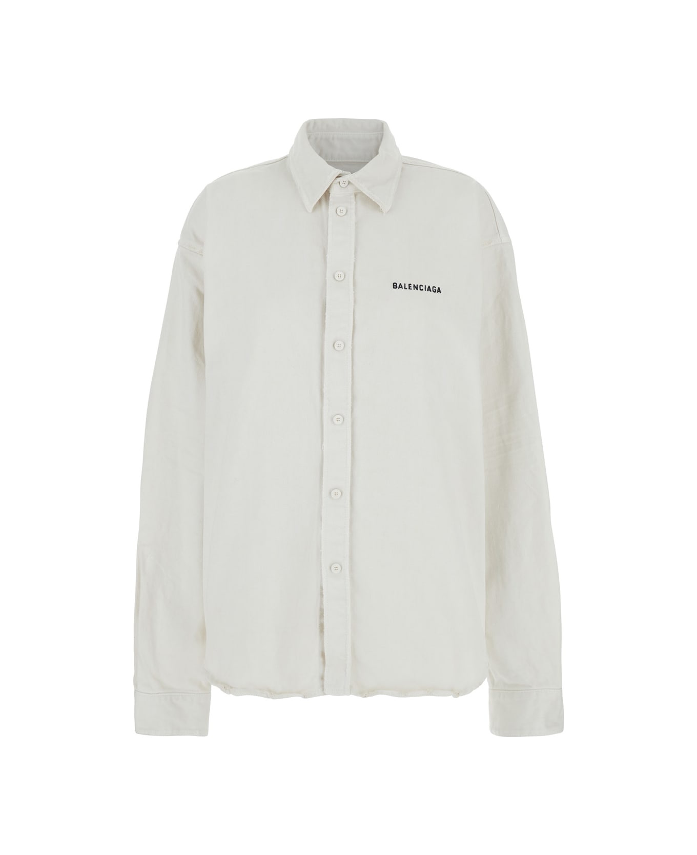 White Shirt With Lettering Logo Embroidered On The Front In Cotton Woman