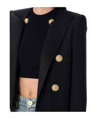 Cropped grain de poudre edge-to-edge jacket with 6 buttons
