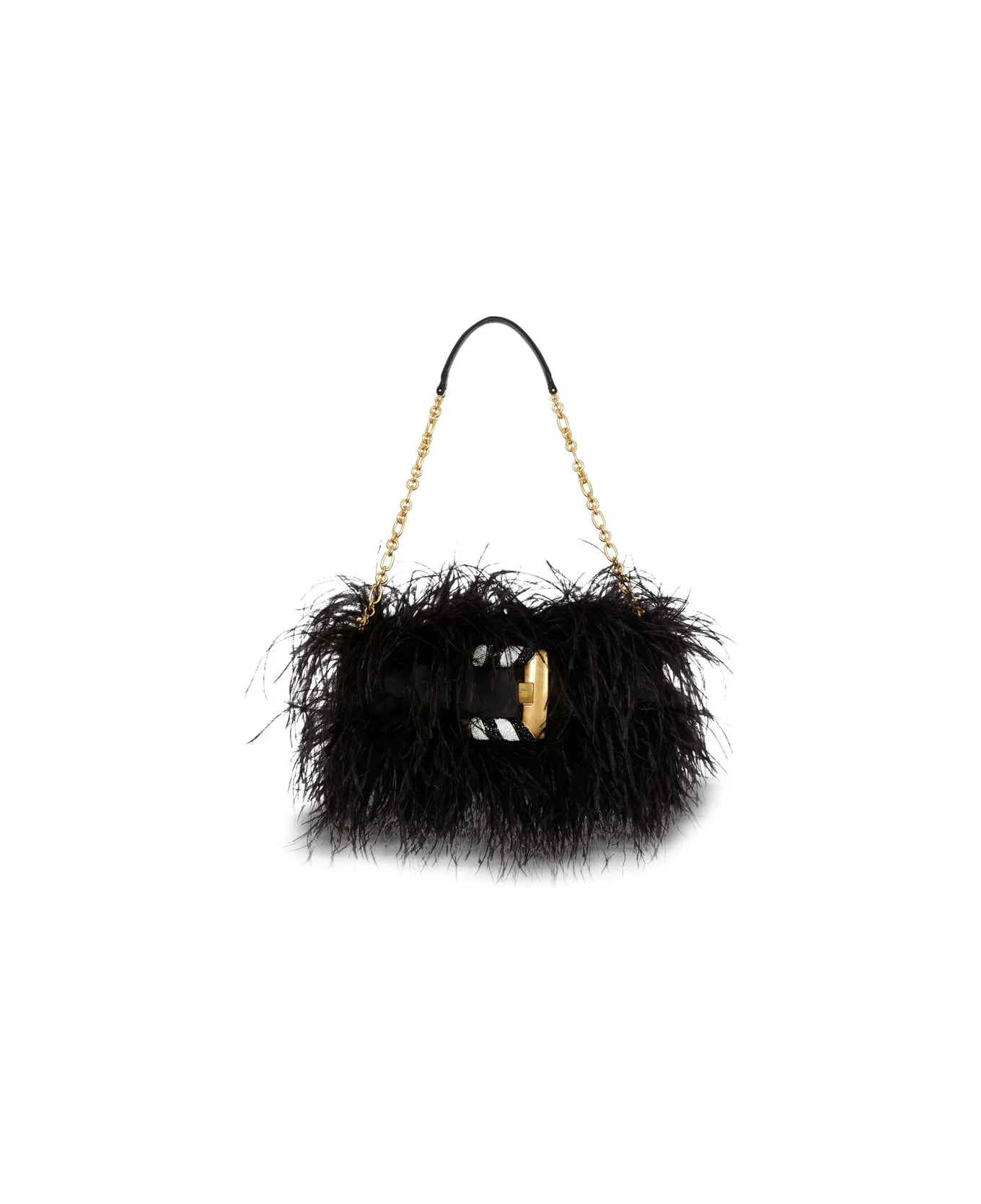 black feather detail crystal embellishment chain strap gold-tone hardware toggle fastening Made in: Italy Color: BLACK Model number: GN1LB024AOFE