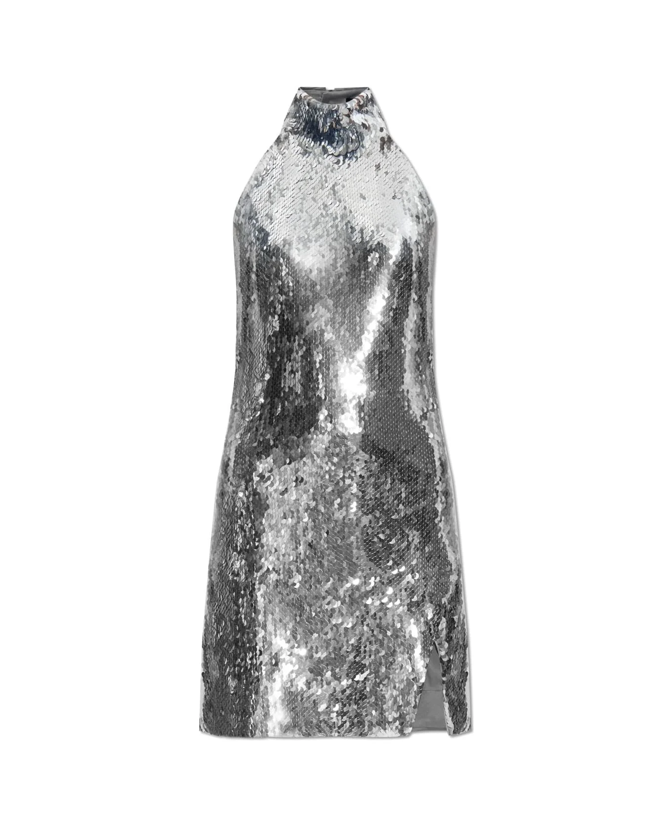 The Sequin Mini Dress by Balmain is a pinnacle of contemporary eveningwear, effortlessly merging Parisian heritage with avant-garde allure. Meticulously sculpted in a flattering, slightly-flared mini silhouette, this dress features a graceful stand collar and a striking open back, delicately fastened with a subtle tie. Sophisticatedly sleeveless, it elegantly frames the shoulders and upper chest for a captivating presence. The entire surface shimmers with densely hand-applied sequins, creating a radiant, metallic luster that dances with the light a signature of haute couture craftsmanship. The underlying fabric's gentle stretch ensures a flawless, contoured fit, honoring Balmain's iconic devotion to the hourglass figure. Impeccable finishing and discreet detailing complete this remarkable creation. Why choose this product? Striking, lustrous sequin embellishment for a show-stopping effect Flattering, tailored mini silhouette with artful open-back design Exclusively designed by Balmain, renowned for chic, rock-inspired luxury Premium craftsmanship and comfort for exceptional wearability Perfectly suited for sophisticated soirees and glamorous occasions Composition: 100% Polyester 100% Polyester 100% Polyester Made in: Portugal Color: SILVER Model number: FF1R5148XH11
