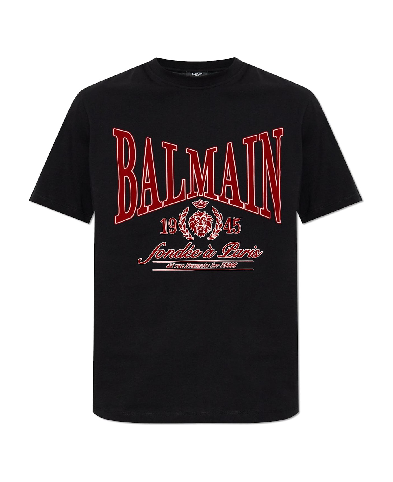 Immerse yourself in Balmain's legacy with this distinguished T-shirt with velvet-finish logo. Specifically crafted in pure, smooth cotton, its classic crew neck design and comfortably relaxed silhouette ensure timeless appeal. The entire piece is rendered in a deep, inky black, which serves as the perfect backdrop for the commanding front detail a large, scarlet red velvet logo, meticulously outlined for dramatic impact. Below the logo, ornate accents the number '1945', a decorative lion crest, laurel leaves, and the inscription 'fondee a Paris' pronounce the maison's Parisian roots, capped by its storied address. Subtly luxurious and tactile, the sumptuous velvet embellishments elevate this garment beyond the ordinary, paying tribute to Balmain's rich heritage of rock-edged sophistication and Parisian flair. Why choose this product? Signature Balmain design prestigious, contemporary iconography Luxurious velvet finish for an elevated tactile experience Impeccably crafted from refined, high-quality cotton Effortlessly stylish, versatile for any refined wardrobe Exclusive Parisian heritage, underscored by bold historical details Composition: 100% Cotton 100% Cotton 100% Cotton Made in: Portugal Color: BLACK Model number: FH0EG000GF25