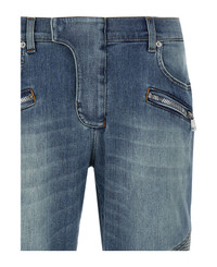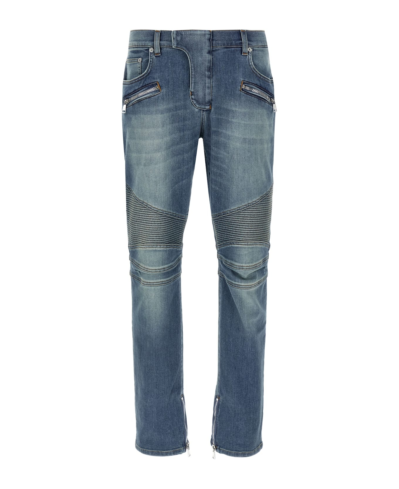 'Biker' stonewashed cotton denim jeans with ribbed details, straight leg, zip and snap button closure, five pockets, zip at the bottom of the leg, back logo tag. Composition: 65% polyester, 35% cotton Made in: Italy Color: Blue Size and fit: - Slim fit Model number: EH1MG115DF446FF