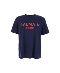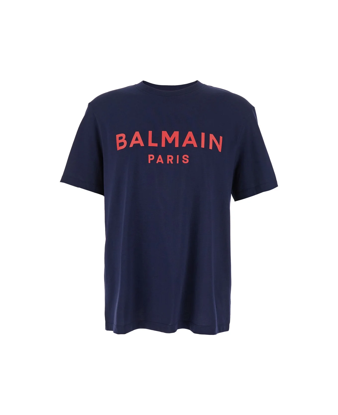 Blue Crewneck T-shirt With Logo Lettering Print On The Front In Cotton Man