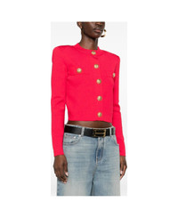 fuchsia gold-tone buttons patch pockets round neck long sleeves Composition: Viscose, 85% , Polyester, 15% Made in: France Color: Fuchsia Model number: GF1KL000KJ434PK