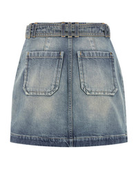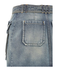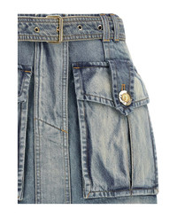 Stonewashed cotton denim mini skirt, cargo pockets with metal 'Gold and Gold Coin' buttons, front zip and snap button closure, back pockets, adjustable and removable belt. Composition: 100% cotton Made in: Italy Color: Light Blue Size and fit: - true to size fit - FRENCH size Model number: FF1LBA88DF796FC