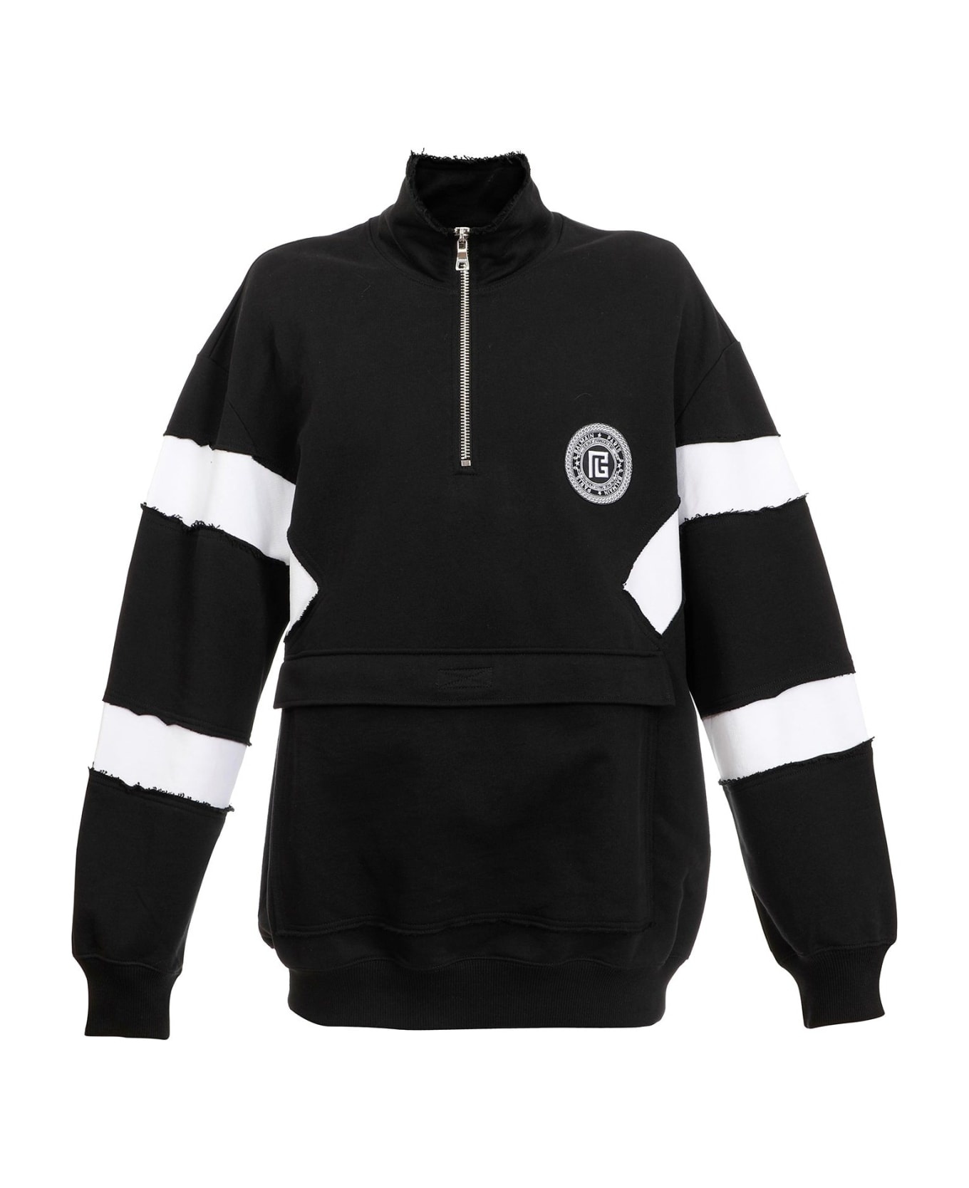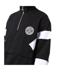 Black and white eco-designed cotton sweatshirt with Balmain logo badge