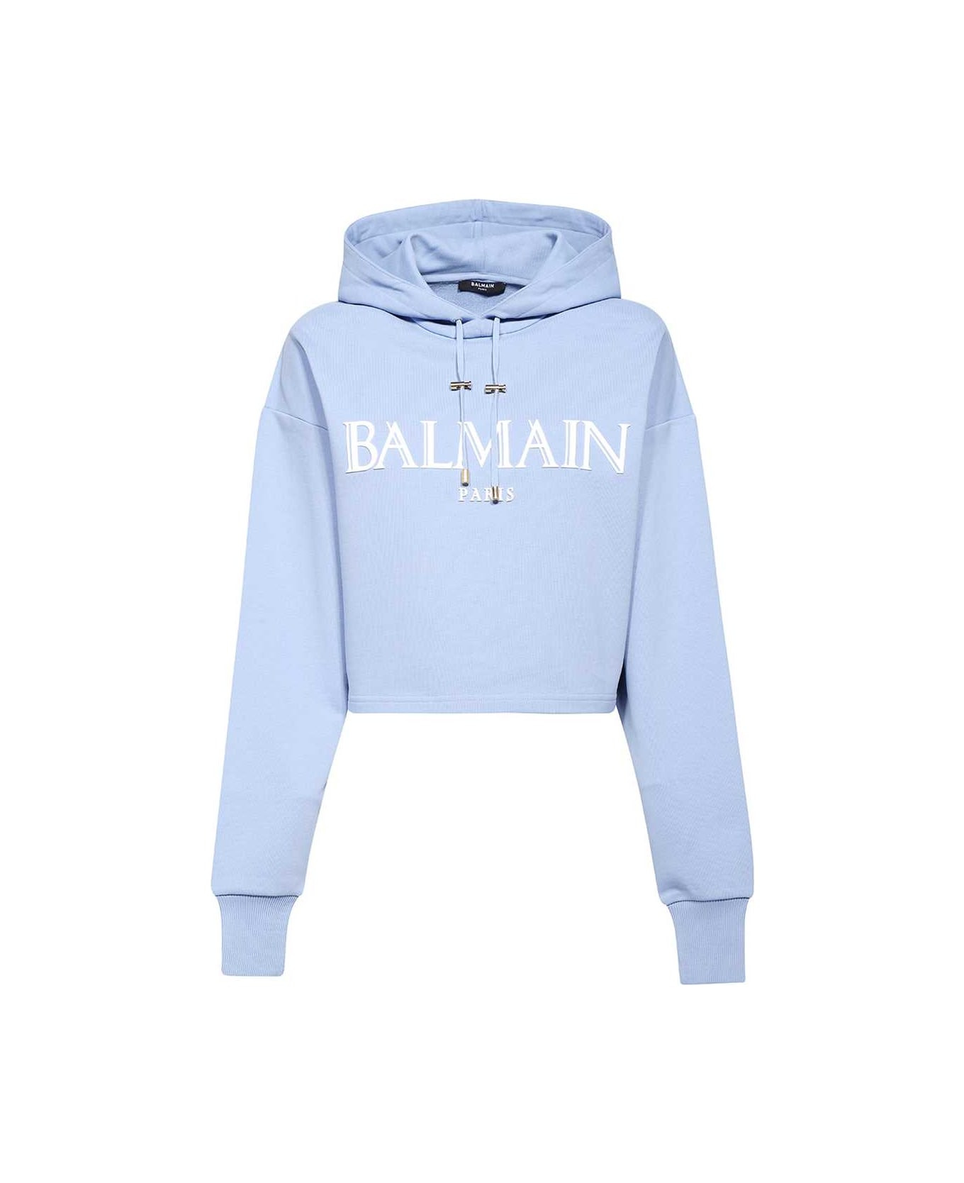 Cropped hoodie with rubber Roman Balmain logo
