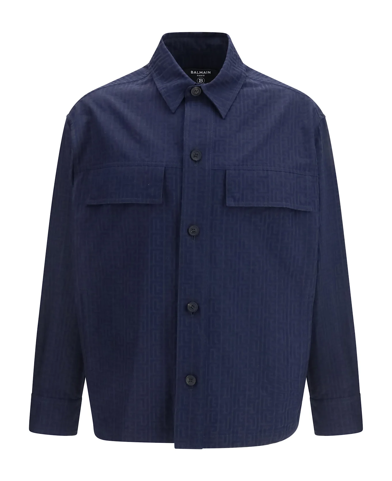 The cotton monogram jacquard overshirt by balmain showcases the house s signature aesthetic through a structured jacquard that highlights the iconic monogram motif. designed with a point collar, long sleeves, and a clean button fastening, it features two flap chest pockets that enhance its utilitarian appeal. the relaxed fit completes a versatile silhouette, ideal to be worn as a shirt or layered as a light overshirt. Composition: 100% % Cotton Made in: Moldova Model number: GH1TH881CG416UB