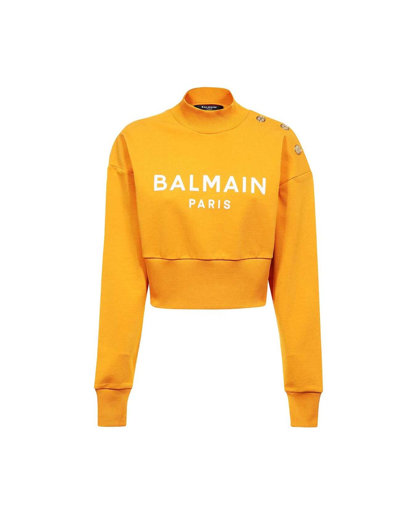 Eco-responsible cotton cropped sweatshirt with Balmain logo print