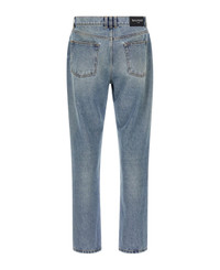 Stonewashed cotton denim jeans with contrast stitching, rounded flap with zip and hook closure, five pockets, straight leg, back logo tag. Composition: 100% cotton Made in: Italy Color: Blue Size and fit: - true to size fit Model number: FH1MI083DF816AW