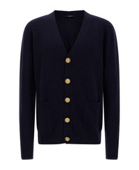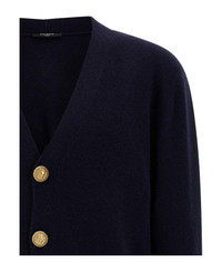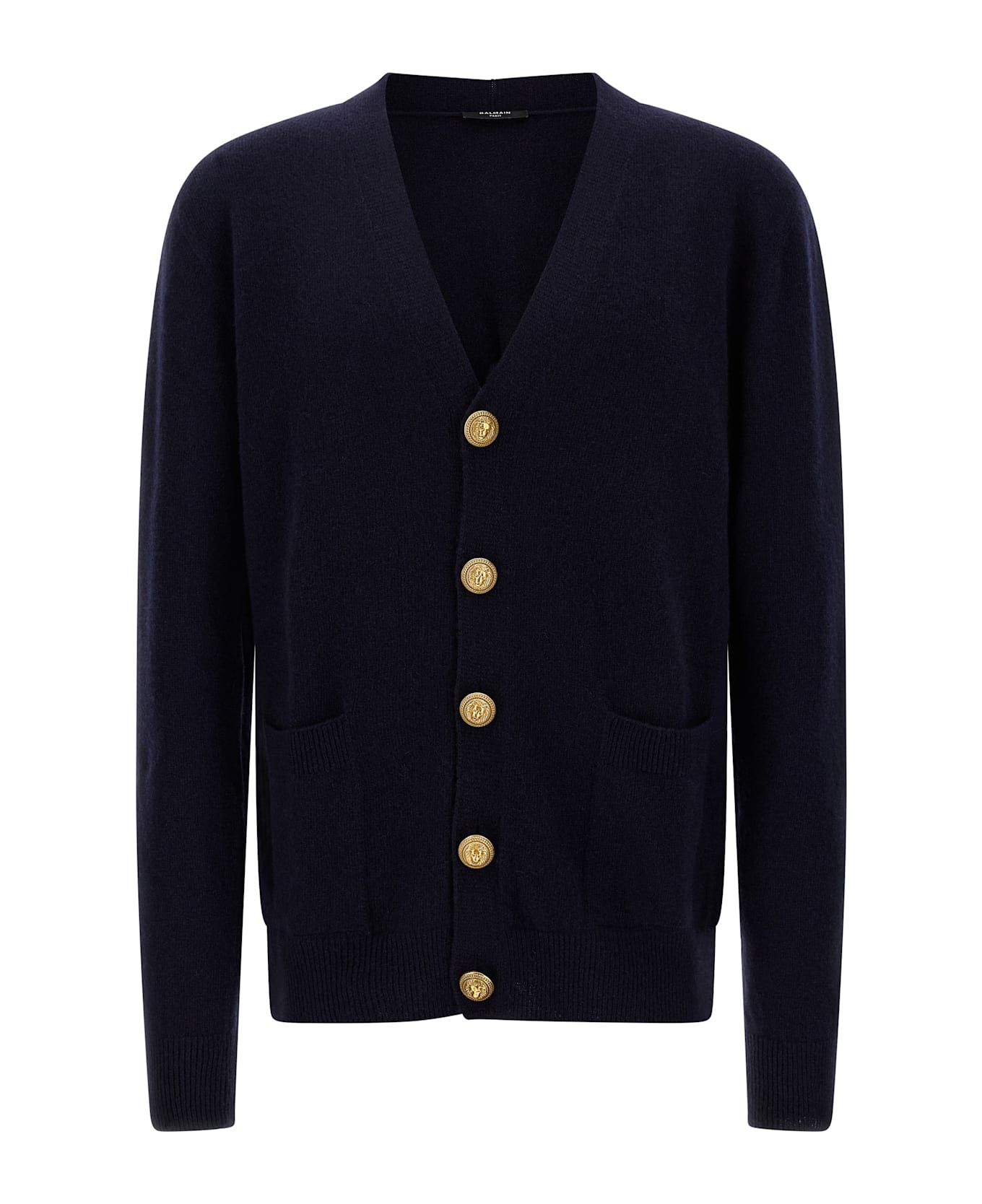 Cashmere blend cardigan, V-neck, gold metal 'Leone' button closure, pockets, long sleeves. SUSTAINABLE: This product is made with 100% recycled and certified cashmere wool. Composition: 50% cachemire 50% virgin wool Made in: France Color: Blue Size and fit: - True to size fit Model number: FH1KL081KI876AJ