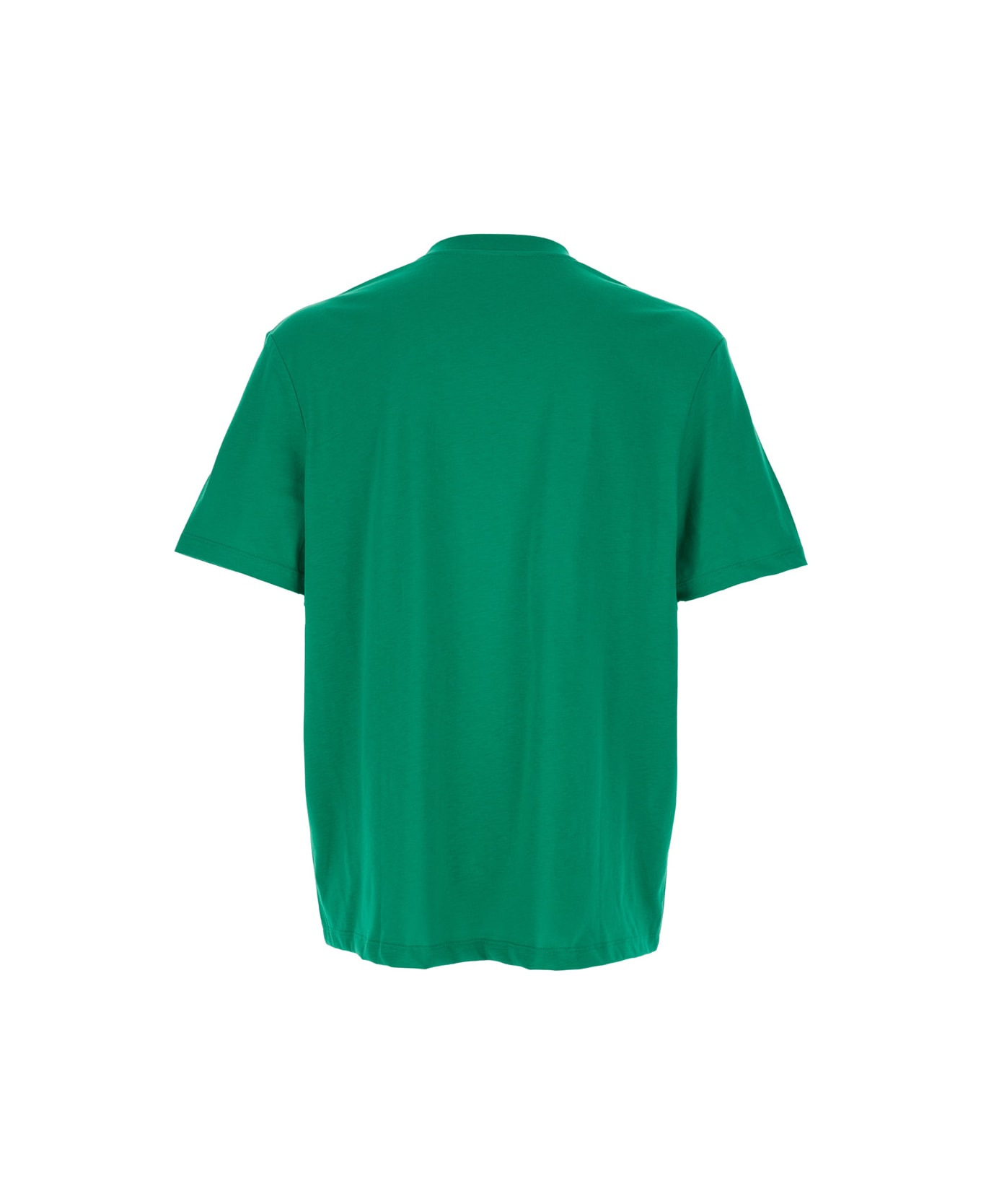 Green Crewneck T-shirt With Logo Lettering Print On The Front In Cotton Man