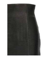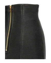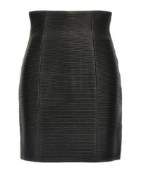 'HW Rolled' high waist mini skirt in ribbed leather, back zip closure, lining. Composition: 100% lamb leather (Ovis aries) Made in: Turkey Color: Black Size and fit: - Slim fit French size Model number: EF1LA495LC620PA