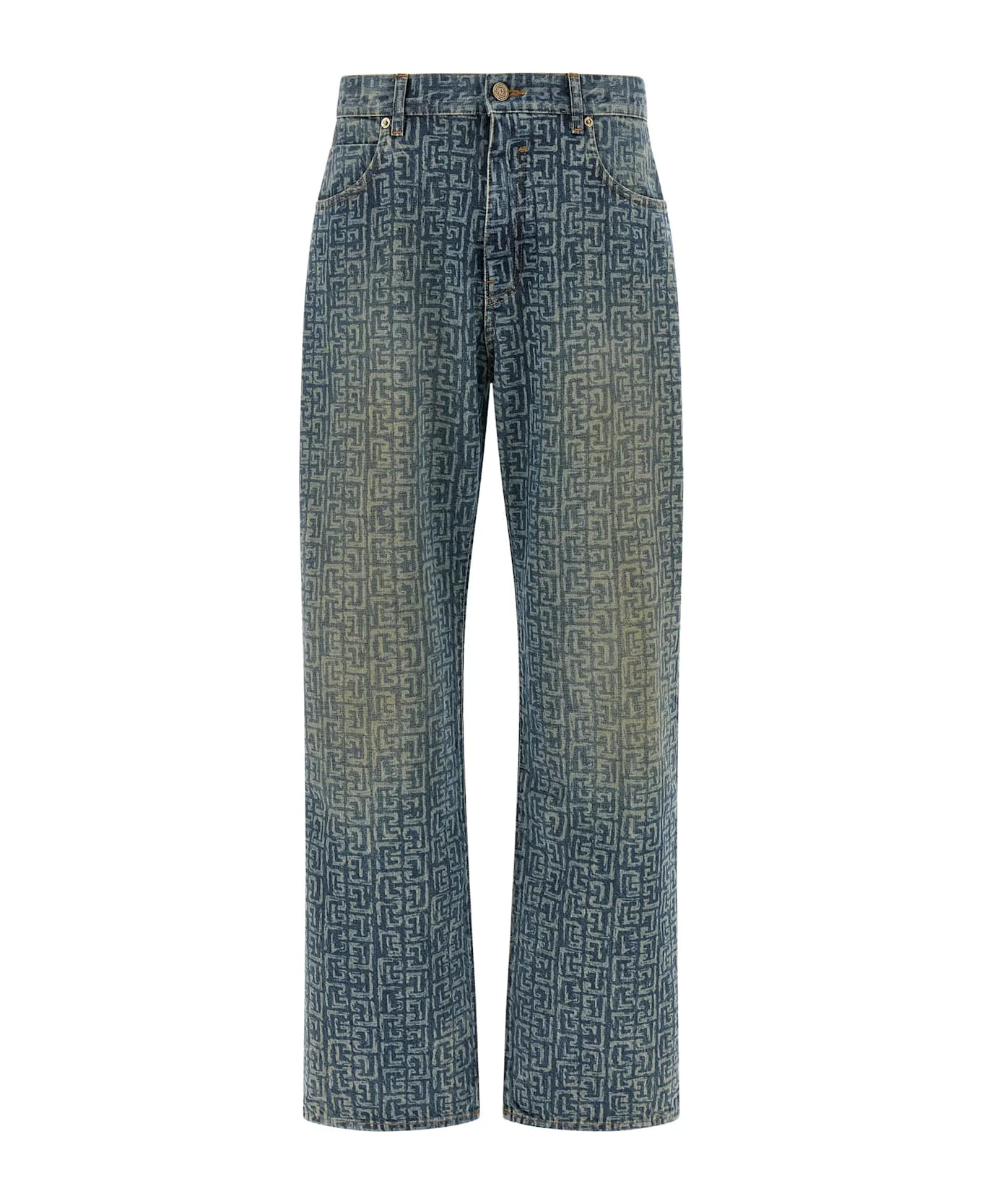 Stonewashed cotton denim jeans with laser Monogram print, contrast stitching, wide and straight leg, front zip and button closure, five pockets, logo tag and embroidered on the back. Composition: 100% cotton Made in: Italy Color: Blue Size and fit: - Loose fit Model number: GH1ML135DG126AW