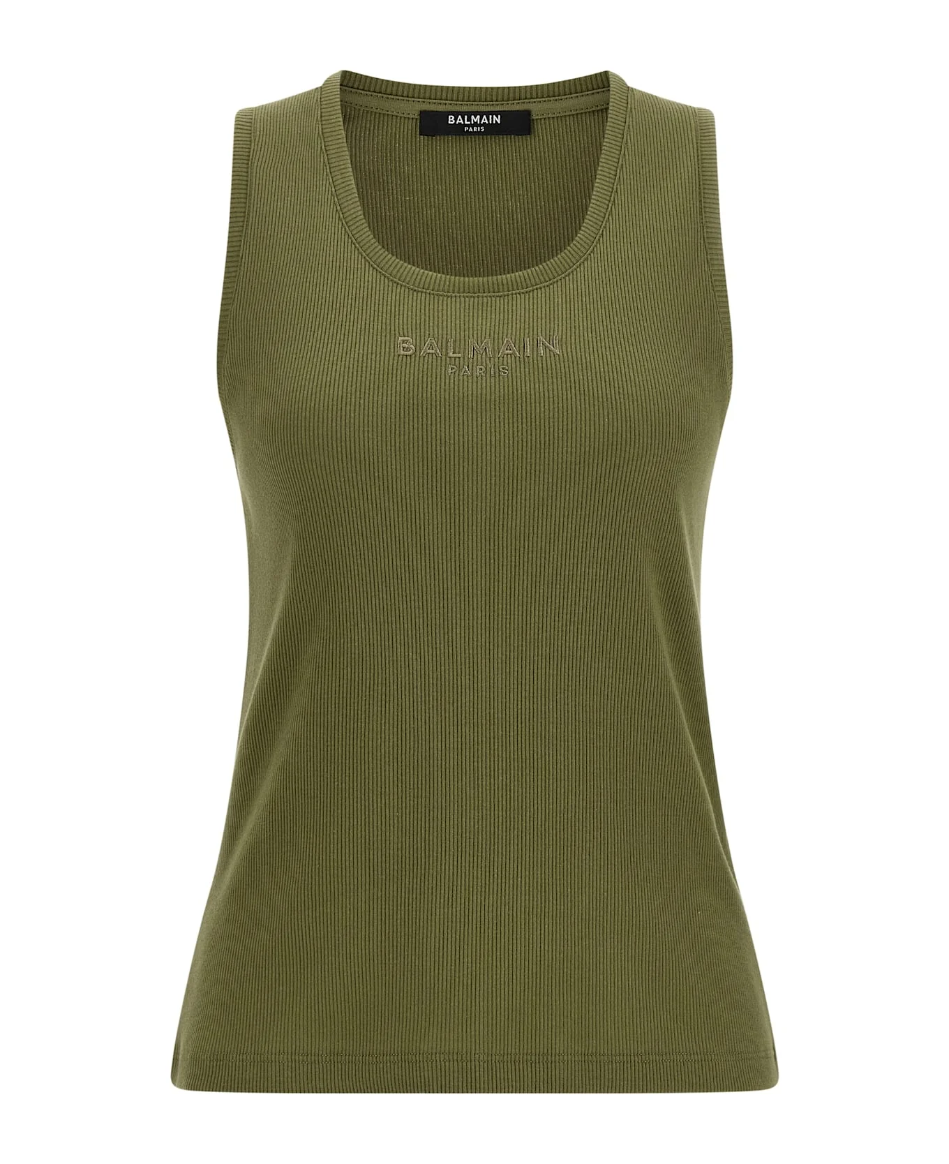 Ribbed cotton tank top with tone-on-tone embroidered logo on the front, and round neckline. Composition: 100% cotton Made in: Italy Color: Green Size and fit: - true to size fit Model number: GF0EB075BD10UIY
