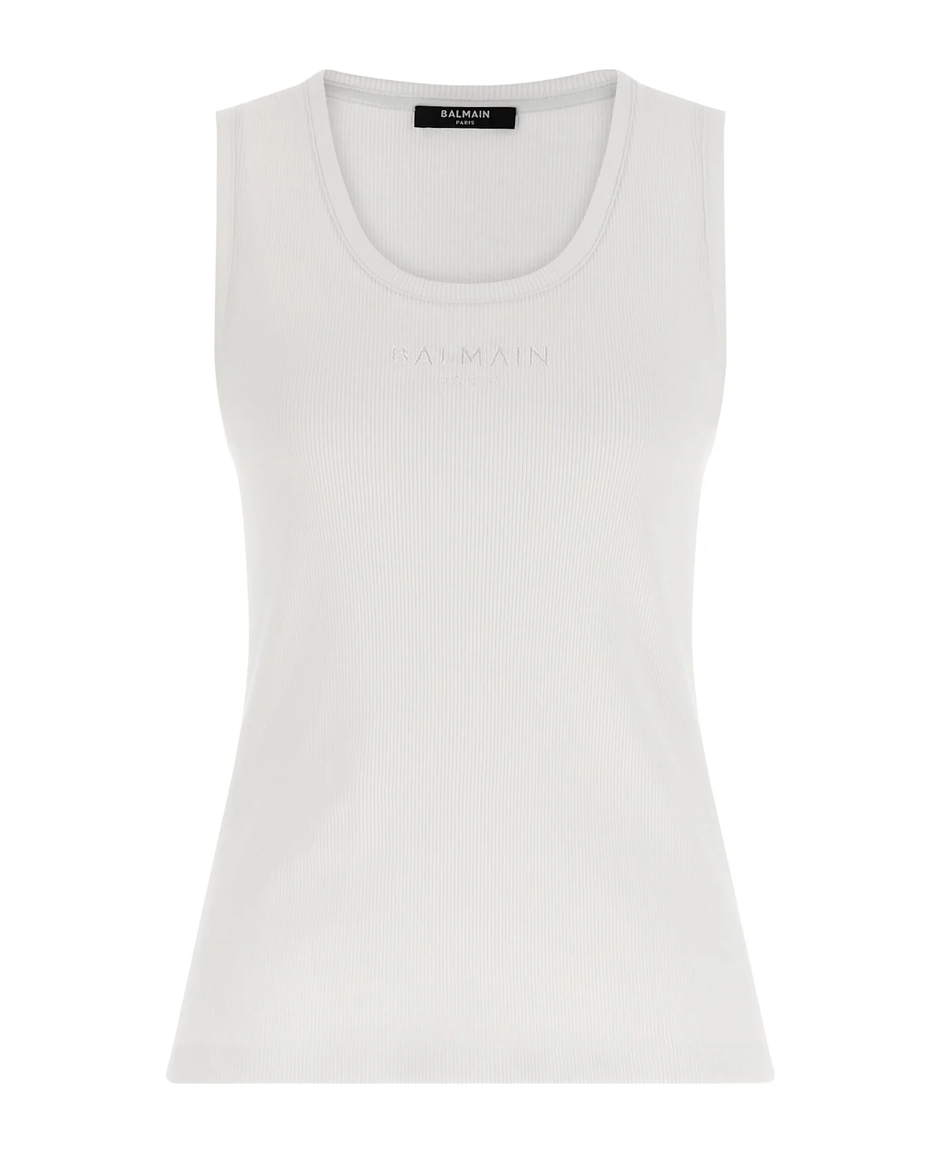 Ribbed cotton tank top with tone-on-tone embroidered logo on the front, and round neckline. Composition: 100% cotton Made in: Italy Color: White Size and fit: - true to size fit Model number: GF0EB075BD10GDI