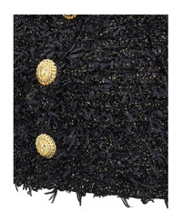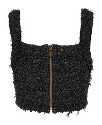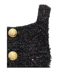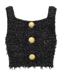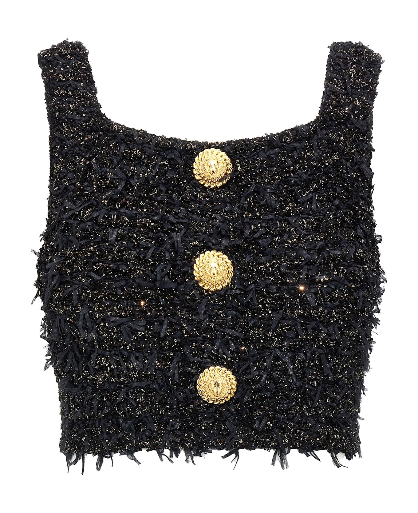 Cropped button-embellished sequined metallic bouclé-tweed top Black
