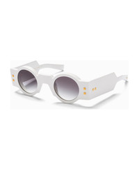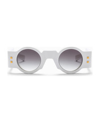 Balmain OLIVIER - WHITE (BPS-159C-42) are limited edition round sharp sunglasses, made in Japan. They feature white acetate frame, pyramidal nose bridge, squared rivets embellishment on front and temples, and gradient grey lens with 100% UV protection. Limited edition of 500 pieces. Made in Japan - Color: black - Material: acetate - Lens: gradient grey - Shape: round - Size: eye 42mm / bridge 28mm / temple 145mm Made in: Japan Color: Black Model number: BPS159C42