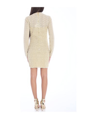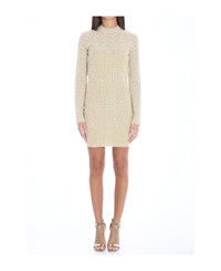 Long-sleeved crewneck dress in beige knit with shiny threads with all-over PB Labyrinth monogram. It features zip closure on the back and ribbed trims. Semi-transparent top and sleeves. Fitted cut. Size nationality: FR Composition: 76% Viscose, 16% Metallic Polyamide, 5% Polyester, 3% Polyamide Made in: France Color: Gfm Beige Model number: DF2R8029KH69
