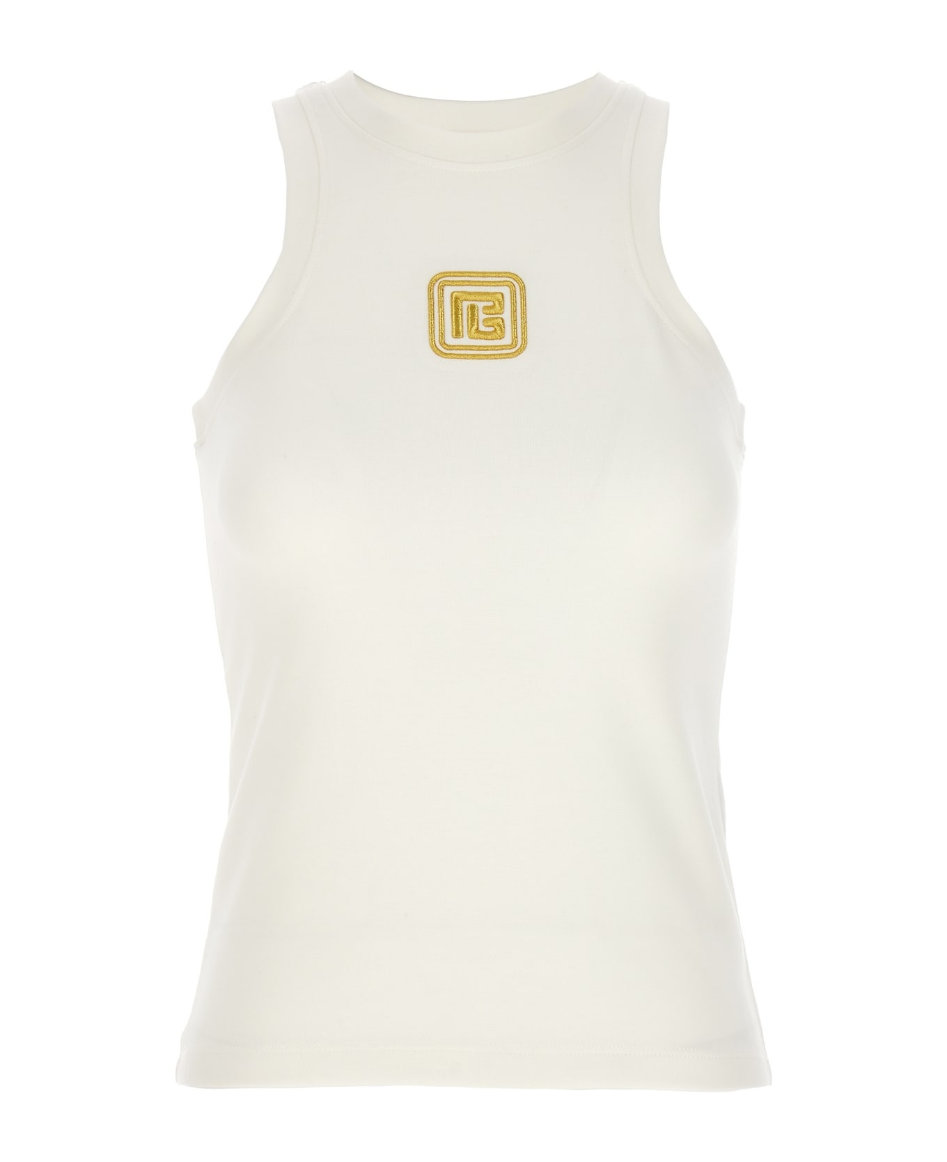 'PB' tank top in cotton blend with front logo embroidery, crew neck, American armholes. Composition: 39% co, 39% md, 12% ea 10% pa Made in: Portugal Color: Gad Blanc Or Size and fit: - true to size fit Model number: DF1EB045BC49