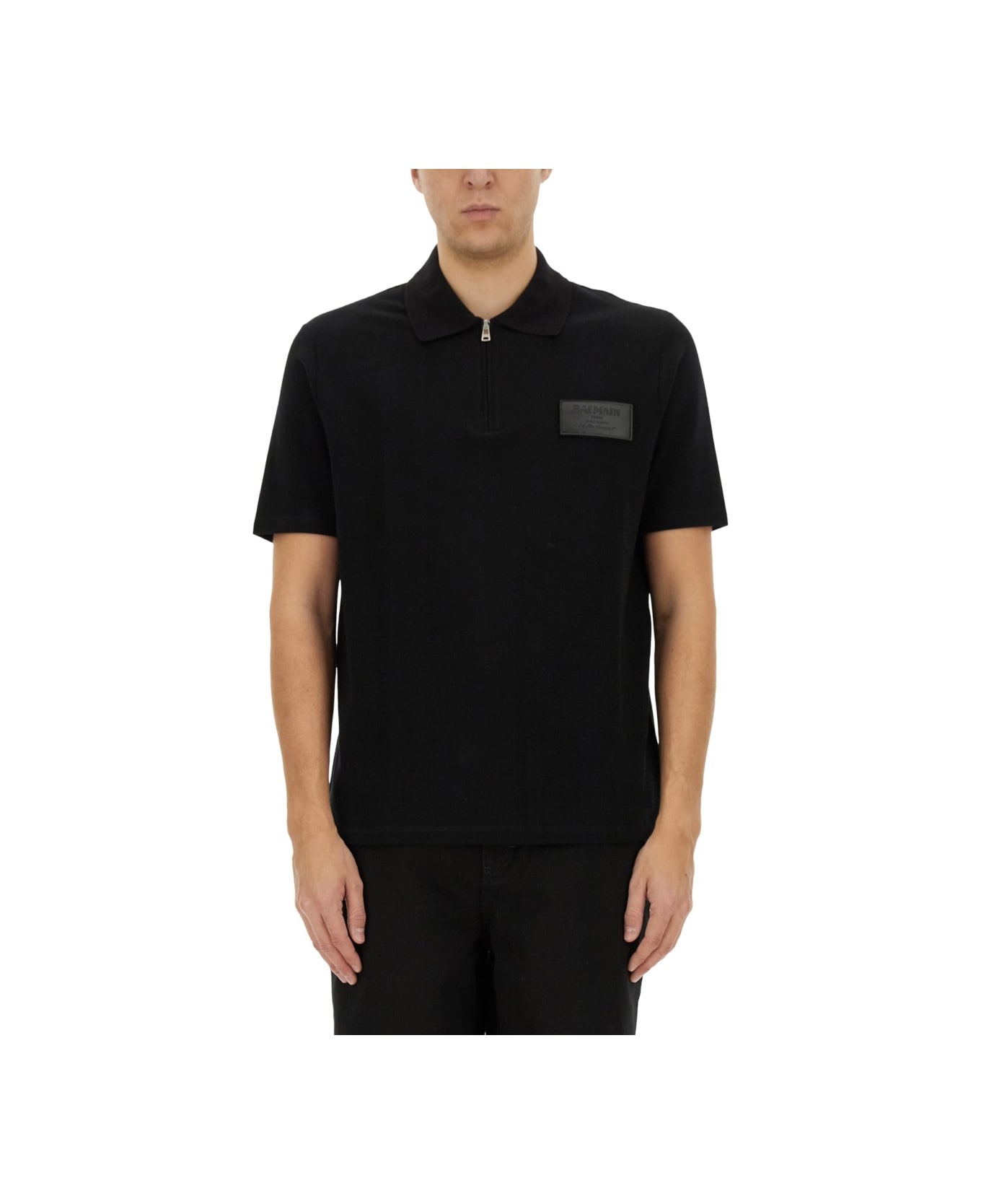 Cotton polo shirt with leather Balmain Couture label