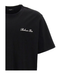 'Signature' cotton, crewneck t-shirt with embossed front and back logo embroidery, short sleeves. Composition: 100% cotton Made in: Portugal Color: Eab Noir Blanc Size and fit: - true to size fit Model number: FH1EG000BC68