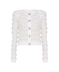 white front button fastening pinched shoulders ribbed trim crew neck Composition: 44% Viscose, 34% Polyamide, 10% Polyacrylique, 06% Mohair - Capra Aegagrus Hircus, 04% Cotton Made in: France Color: White Size and fit: - This piece fits true to size. We recommend you get your regular size - Model is 1,75m / 5ft 8in wearing size 36 (FR) Model number: FF1KL131KI740FA