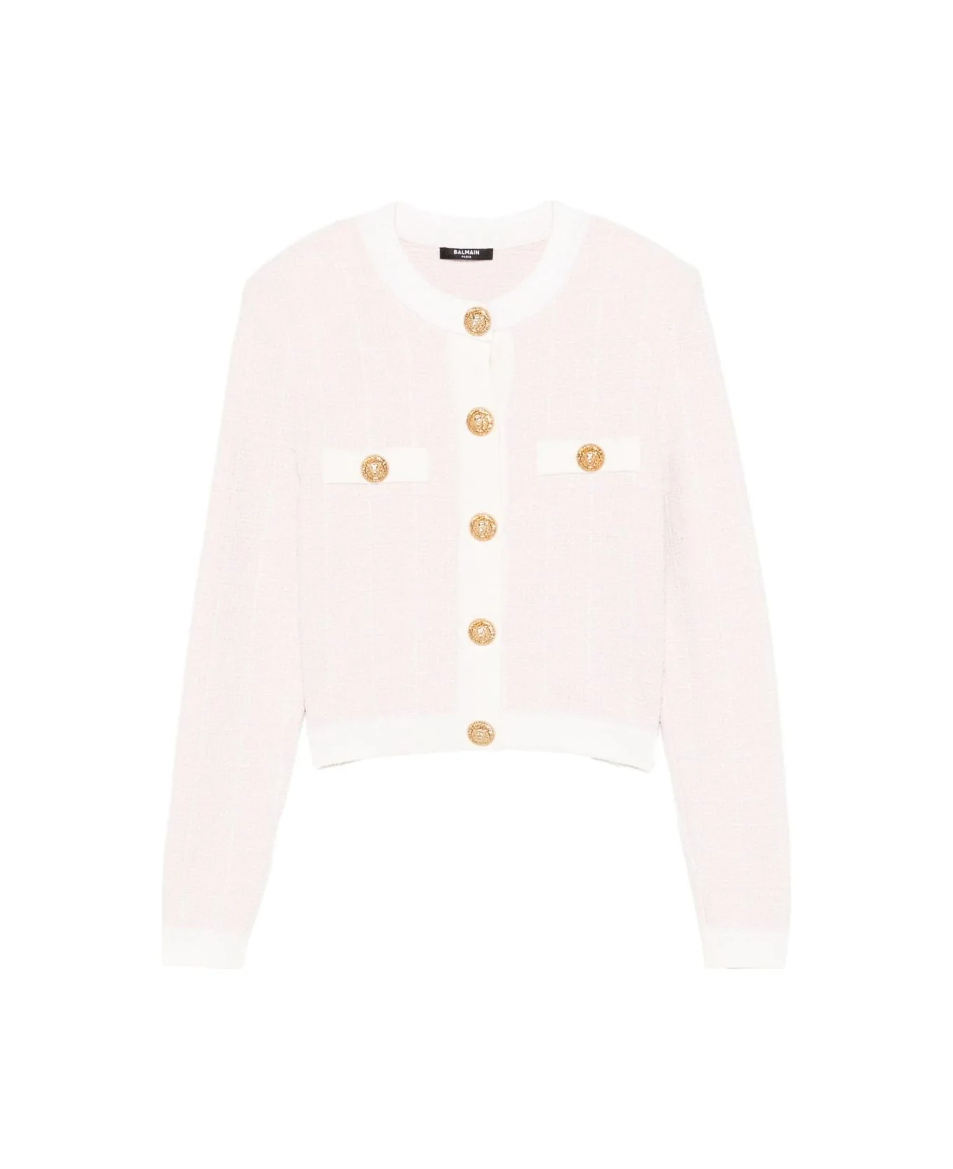 natural rose round collar gold-tone buttons patch pockets tweed knit Made in: France Color: Pink Model number: GF1KL000KJ48OIB