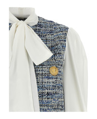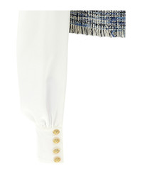 tweed-panel blouse