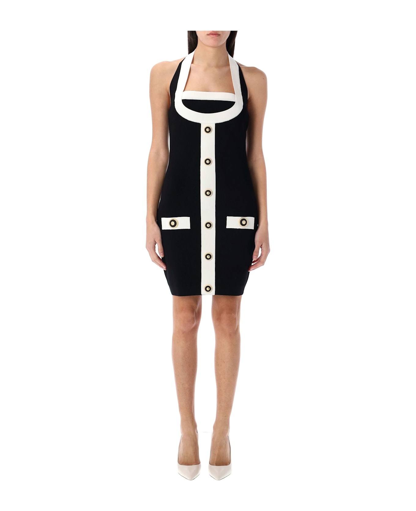 Two-tone Halterneck Knit Mini Dress