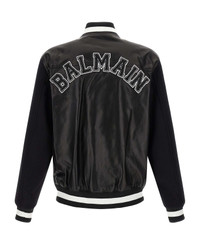 Logo-Appliquéd Leather and Wool Varsity Jacket Black