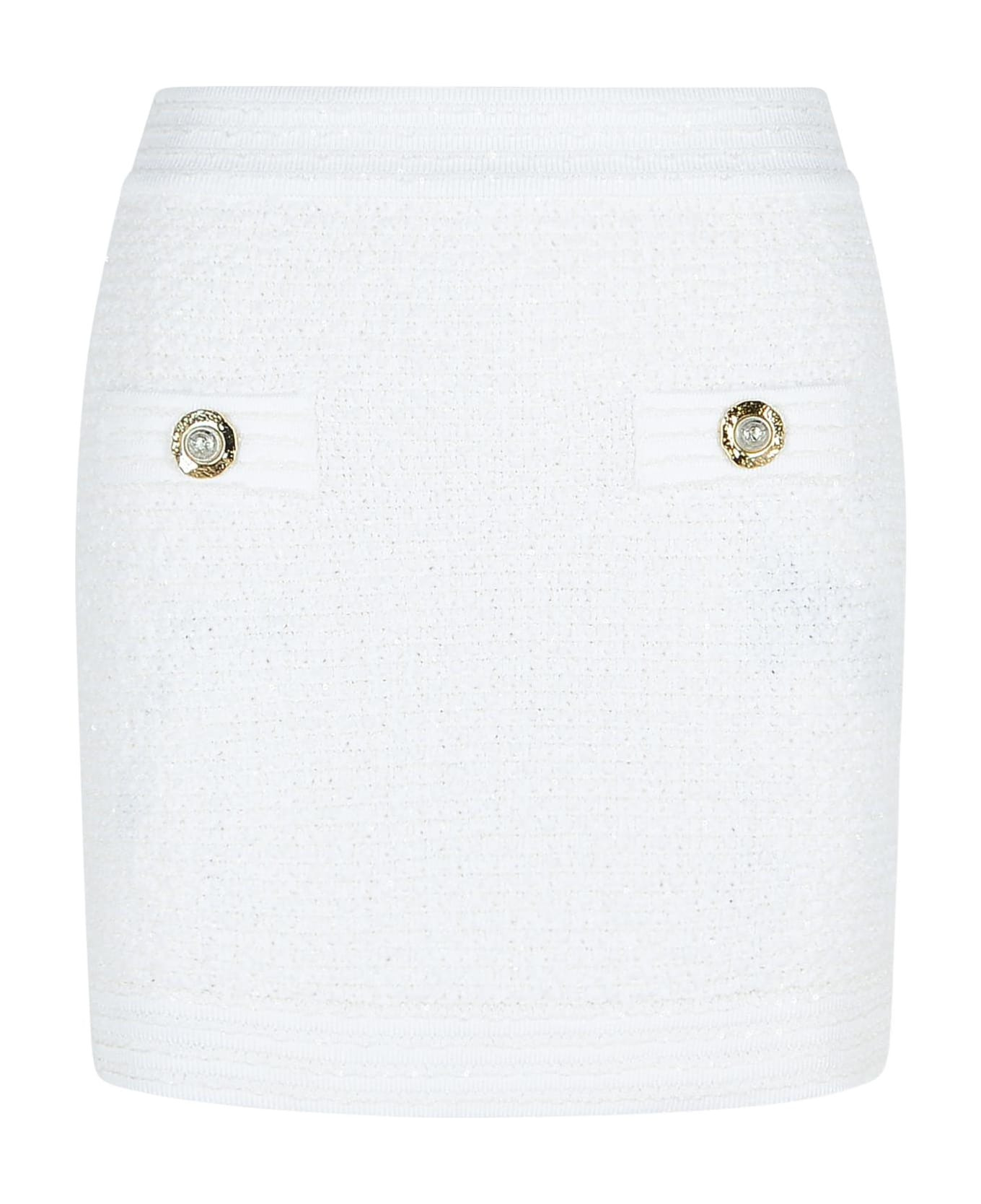White Cotton Blend Miniskirt