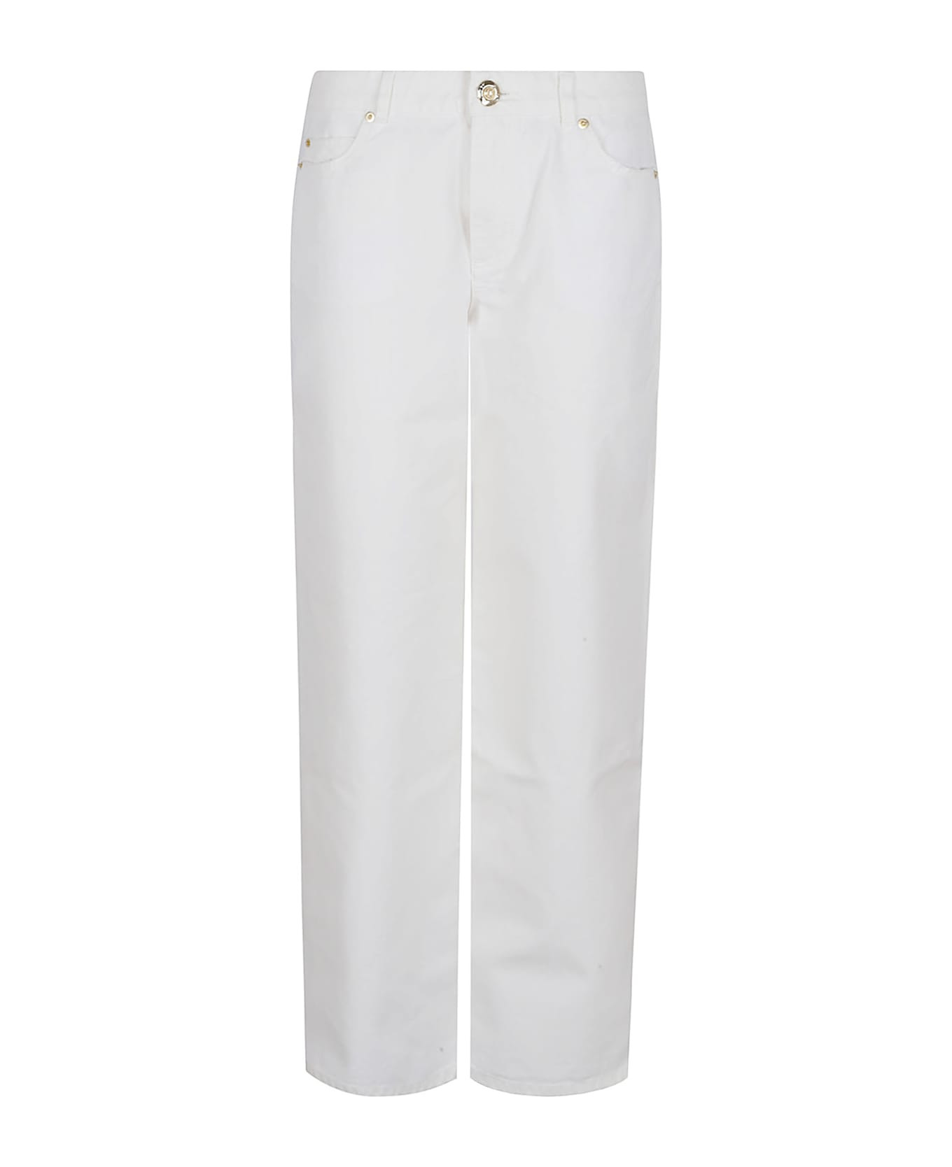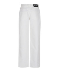 Denim jeans by BALMAIN. Belt with belt loops and a triple loop on the back; concealed zip and button closure; five pockets; straight fit. Featuring "Gold and Gold Coin" metal buttons, a Balmain Vintage woven label on the back, engraved rivets, and distressed finishes. Made in: Italy Color: Fc Blanc CassE Size and fit: - Regular fit, recommend you get your regular size Model number: FF1MI050DF780FC