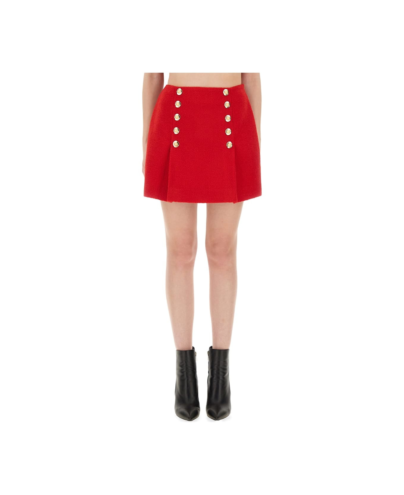 button-detail virgin wool mini skirt