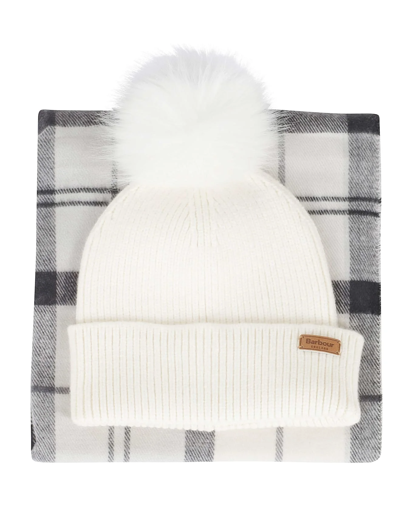 Dover Hat and Scarf Set - Barbour - monochrome tartan color - hat with pom-pom - fringed scarf Made in: China Color: Monochrome Tartan Model number: LGS0054LGS|097