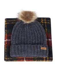 Saltburn Hat and Scarf Set - Barbour - winterberry color - tartan pattern - hat with pom-pom - fringed scarf Made in: China Color: Winterberry Tartan Model number: LGS0077LGS|097