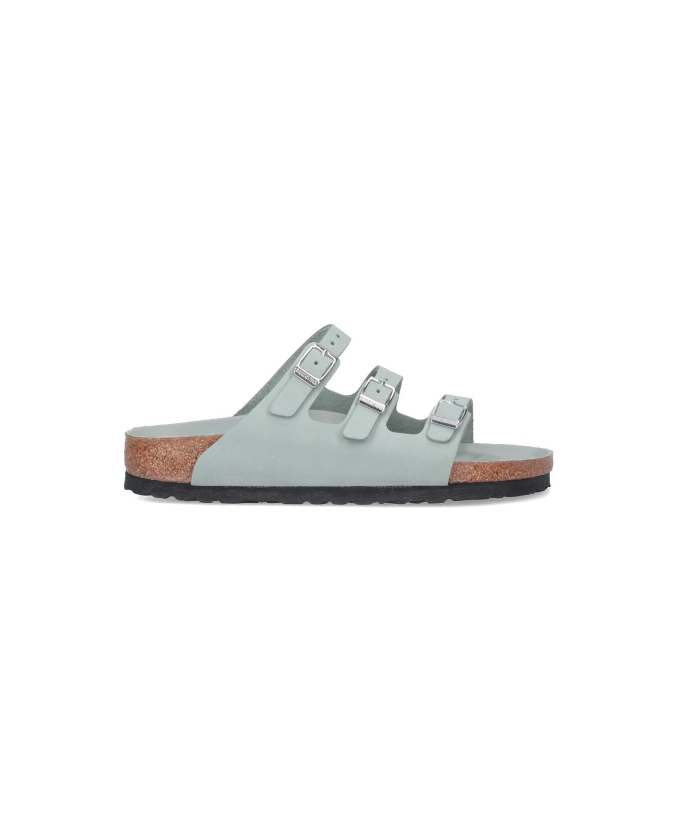 Birkenstock 'Florida' sandals in aqua green nubuck leather with round toe, adjustable top straps, logo detail engraved on the buckle, anatomical cork and latex footbed, slip-on fit, E. V. A. sole. Composition: 100% Leather Made in: Germany Color: Green Model number: 1029450SAGE