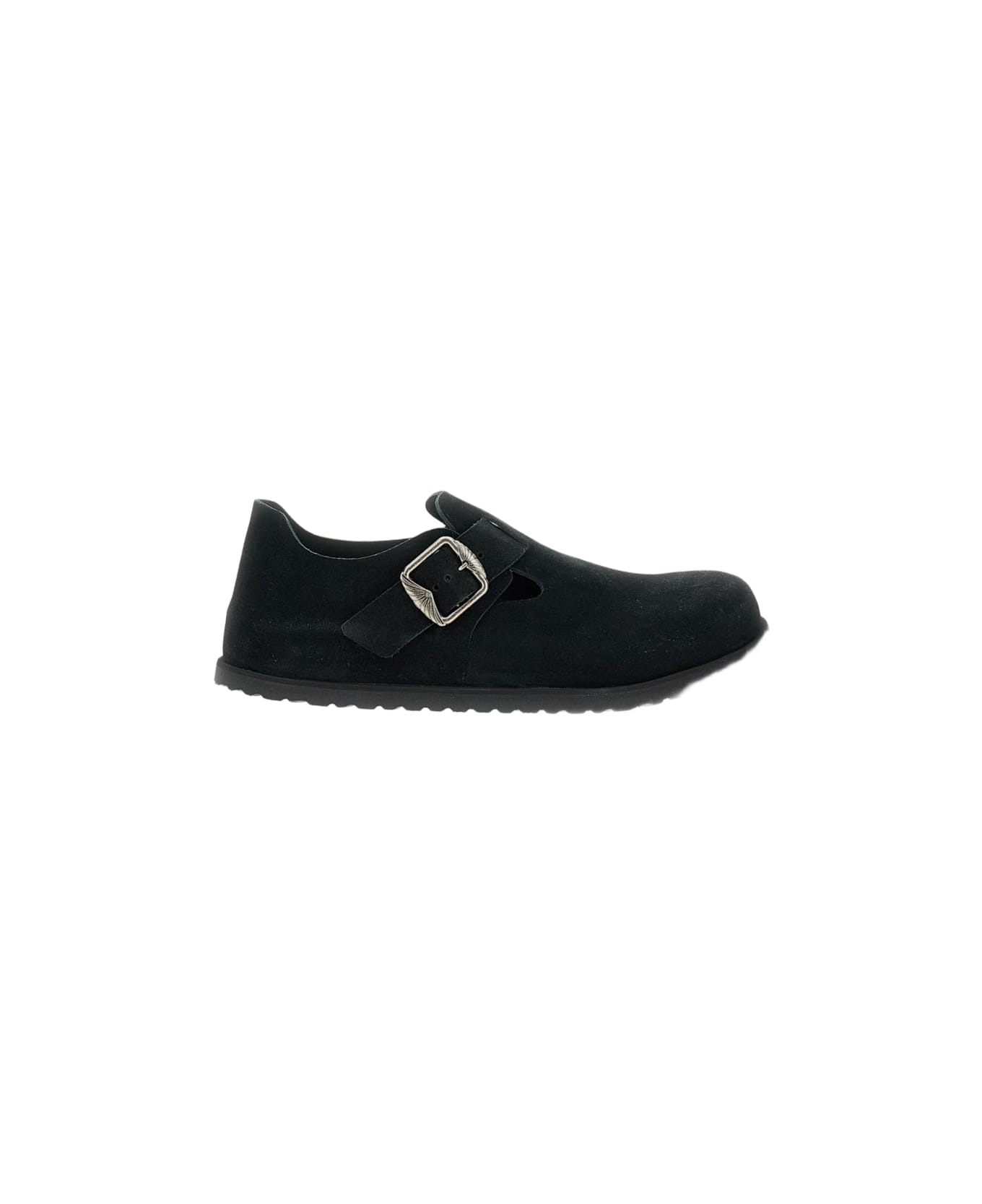 Outer material: Suede Footbed: Anatomically contoured Birkenstock, covered in suede Sole: Lightweight EVA Distinguishing details: Adjustable metal buckle, seamless construction on the upper (clean look), heritage style, "Made by tradition since 1774" Ideal for: Everyday wear, casual looks, comfort/style combinations, paired with jeans or relaxed outfits Composition: 100% Leather Made in: Italy Color: Black Model number: 1031845BLACK