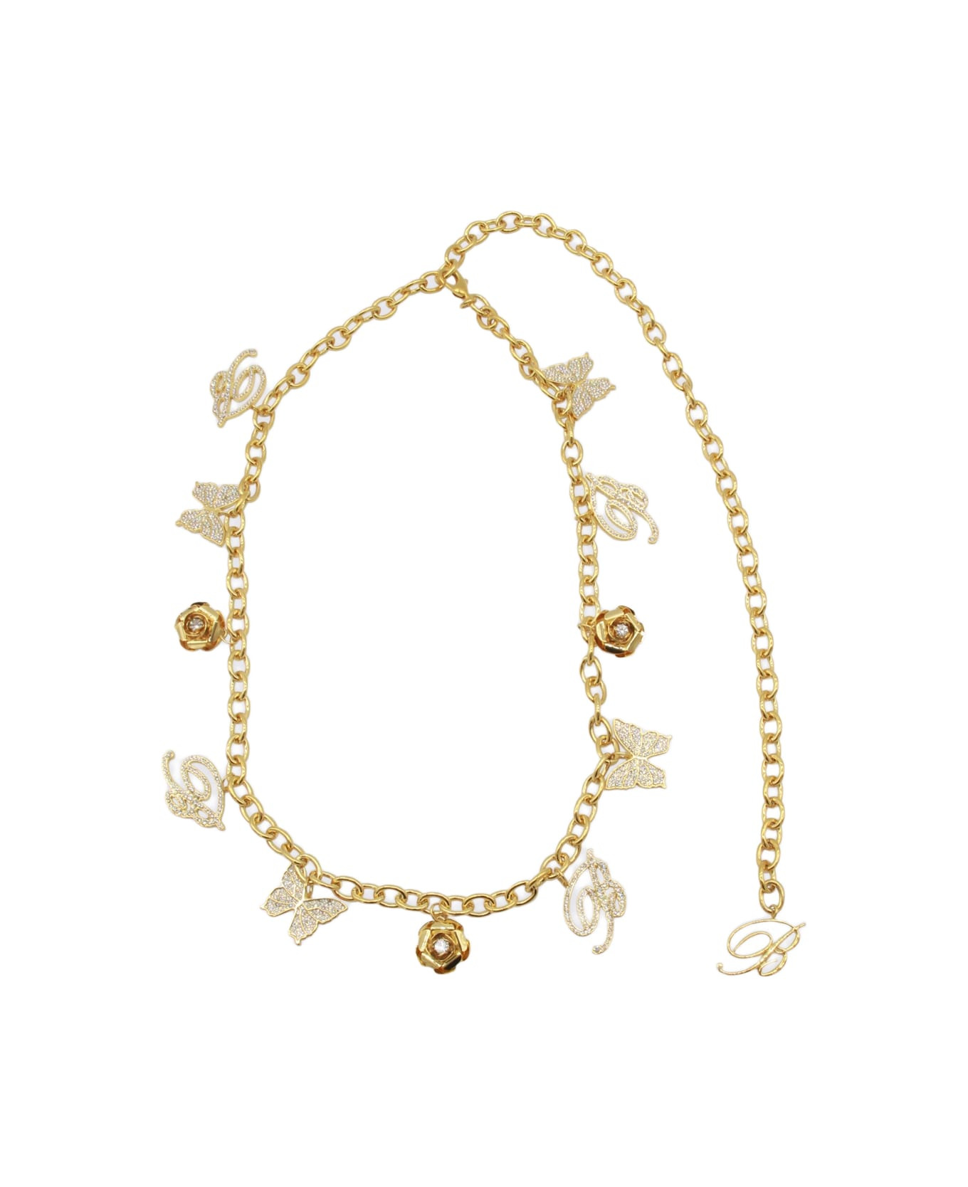 Gold tone belt from Blumarine featuring back fastening, gold tone hardwarw and logo details. Composition: _accessorio: 90% Ot, 10% Ve; Made in: Italy Color: GOLD/CRYSTAL Model number: A522W385AA8359