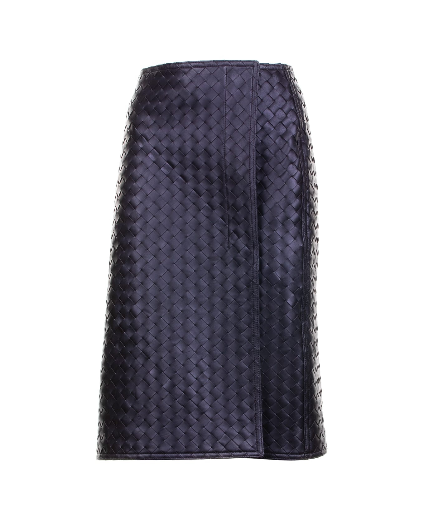 Intrecciato leather midi wrap skirt Brown
