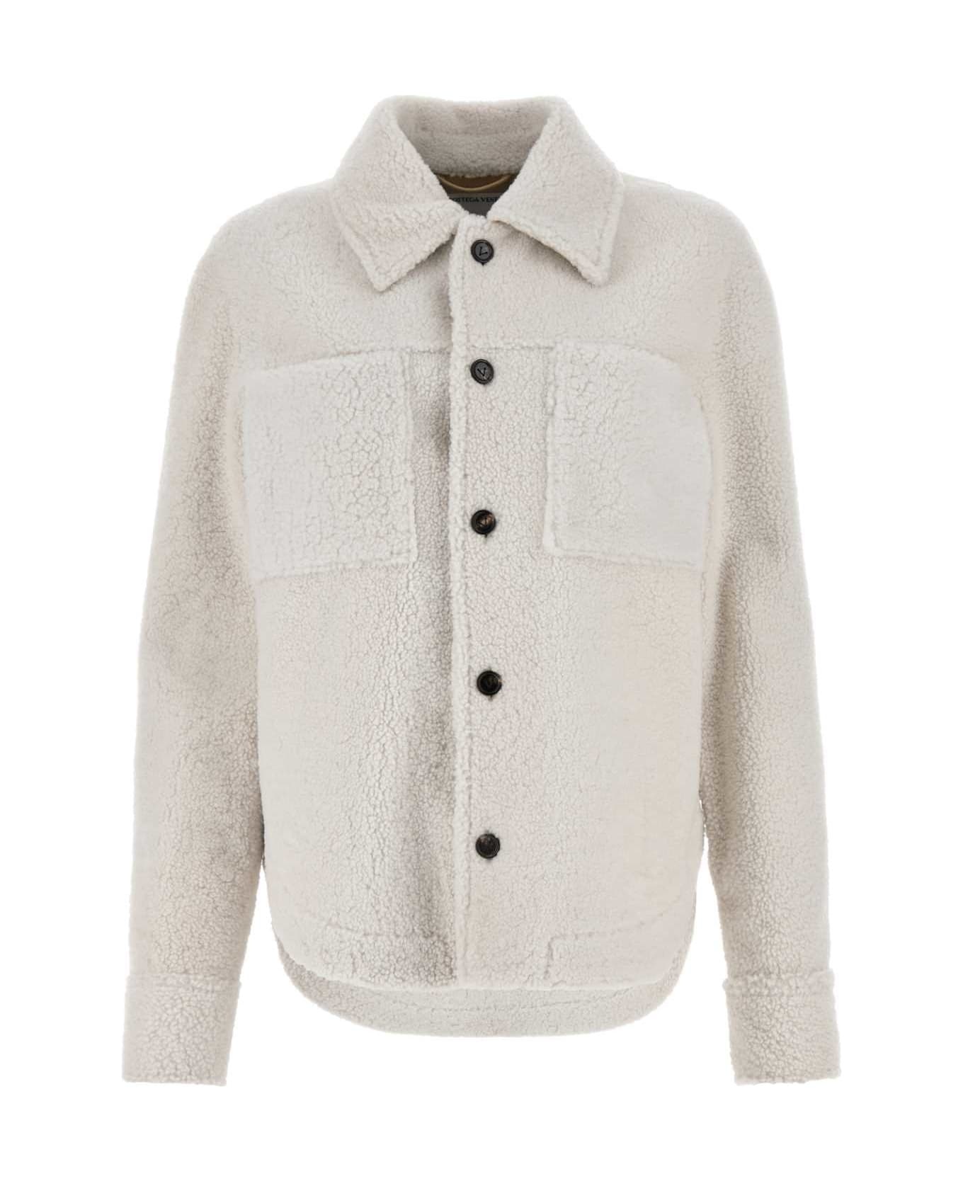 Chalk Shearling Oversize Shirt from Bottega Veneta Made in: Italy Color: POPCORN Model number: 796554V4AX09908