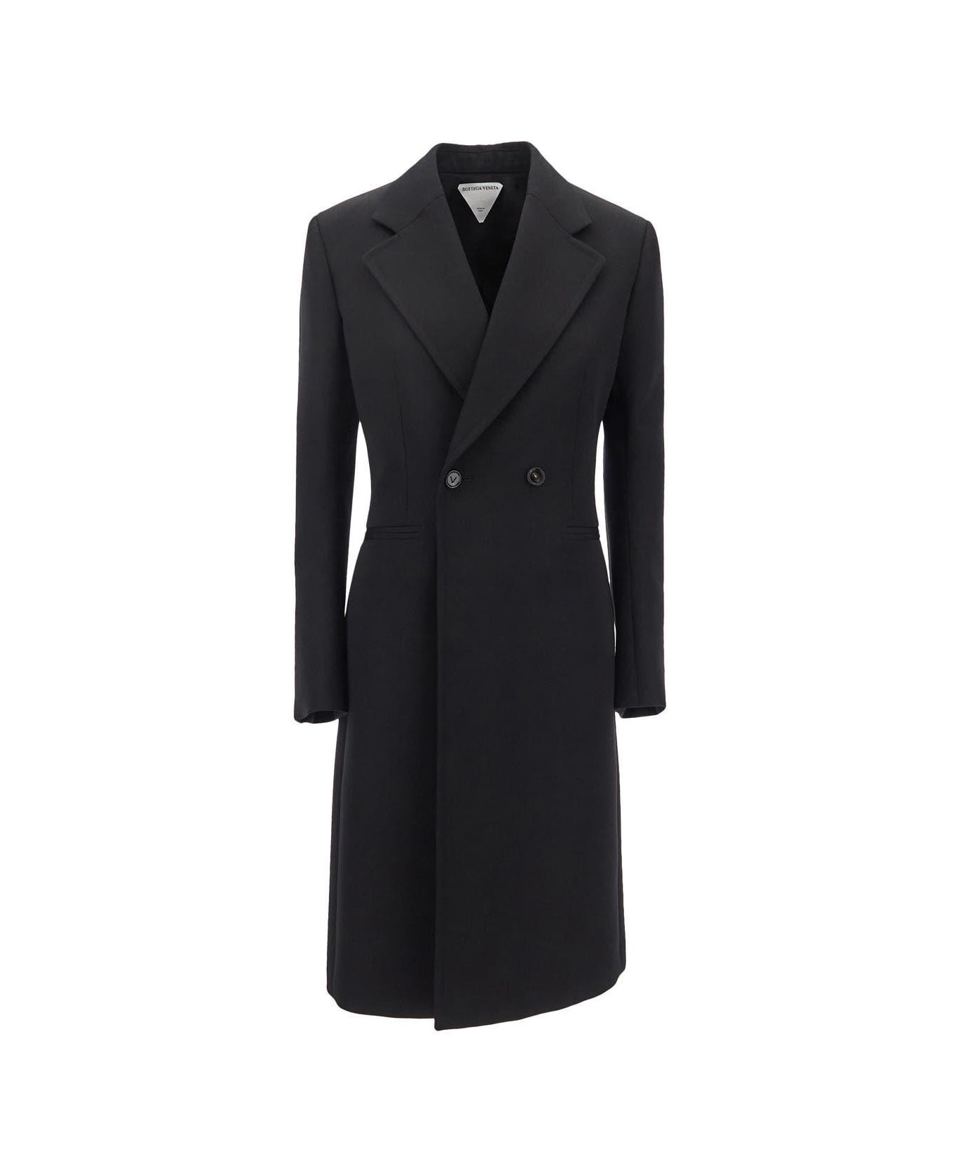 Bottega Veneta cooat in black wool with long slevees. The item is featured by button closure, half lined and regular fit. Composition: 100% Wool Made in: Italy Color: BLACK Size and fit: - true to size fit Model number: 709314VKIV01000